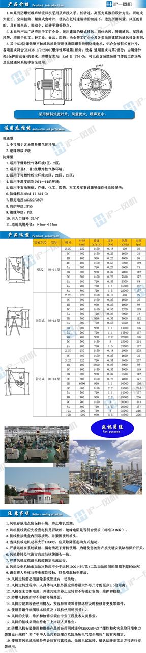3.其中BDZ防爆低噪声轴流风机是采用优质隔爆型纯铜绕线电机,铝合金倾斜式宽叶片,各项要求符合GB3836.1/2-2010(爆炸性环境第1部分:设备 通用要求与第2部分:由隔爆外壳d保护的设备)的要求,