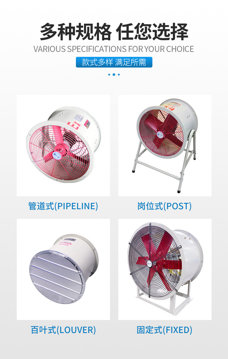 本系列风机适用于输送易燃易爆无腐蚀性气体。广泛应用于一般工厂、仓库、办公室、住宅内通风换气或强暖气散热,也可在较长的排气管道内间隔串联安装以提高管道中的压力,卸下电机可做自由风扇。