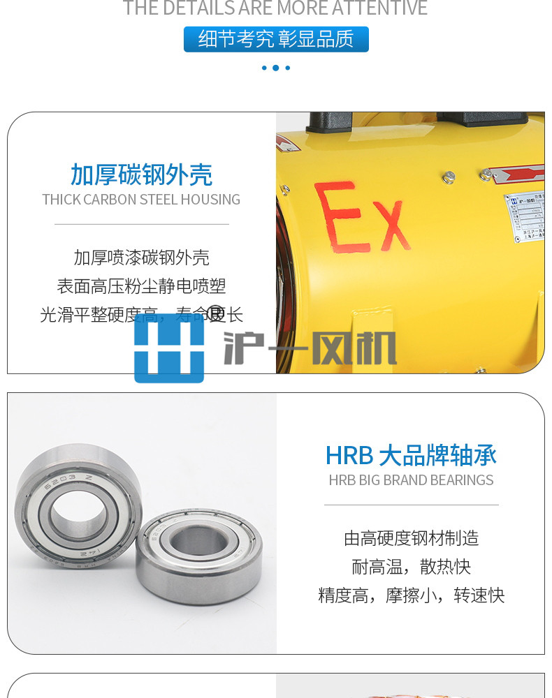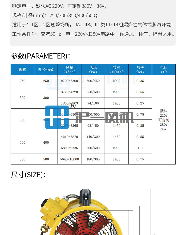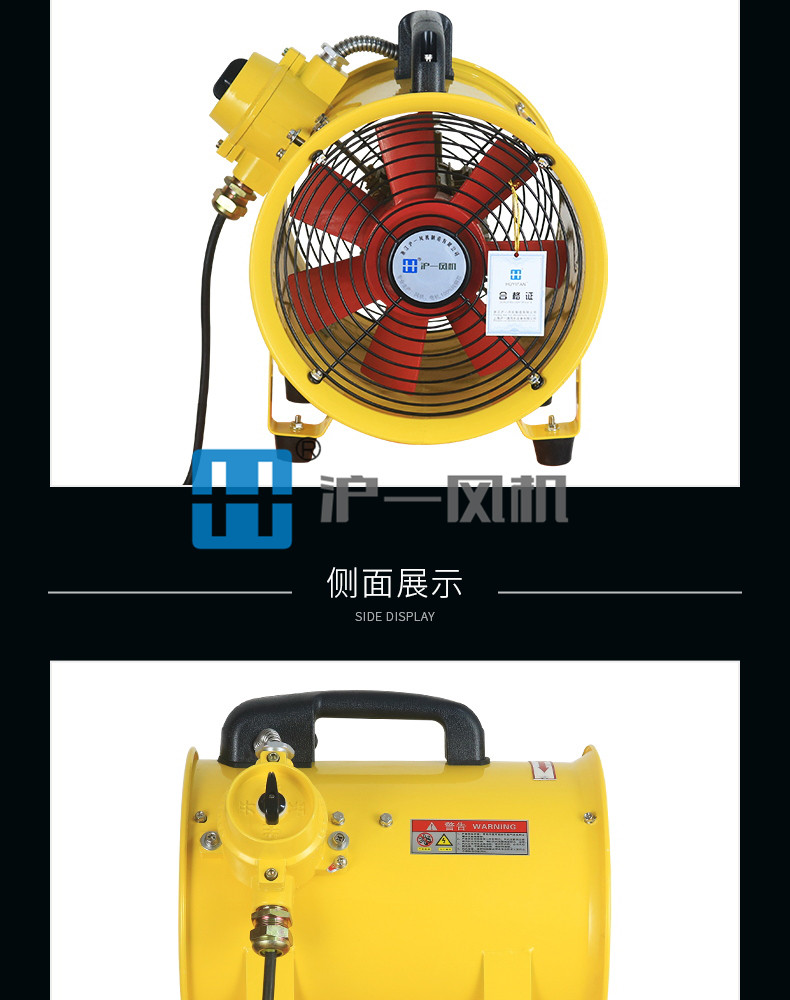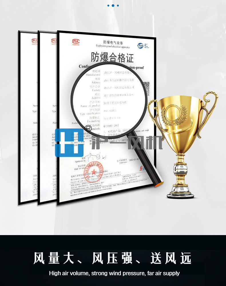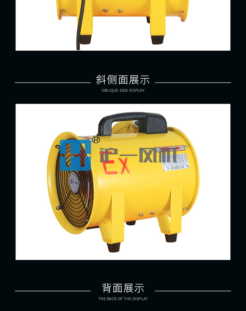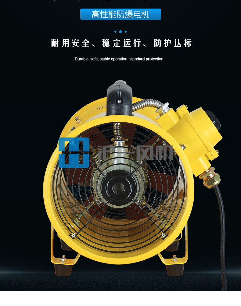 2.防爆电机采用高转速隔爆型纯铜线圈电机,整机设计结构合理具有重量轻、风量大、静压高、防爆性能可靠、便于携带和移动等特点;