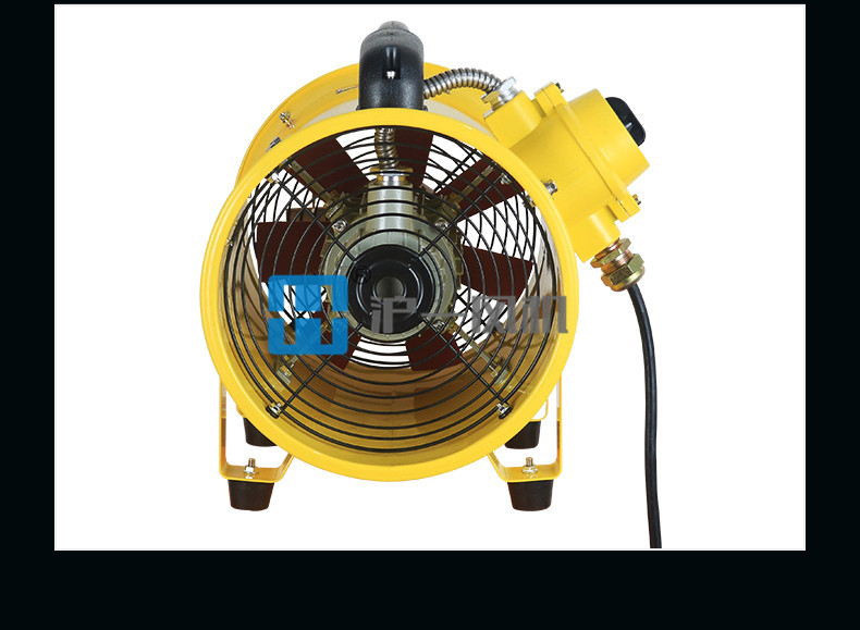 1.200MM8寸手提式防爆防油船用轴流风机 由防爆电机、扇叶、防爆开关、手柄、防护网等部件组成;