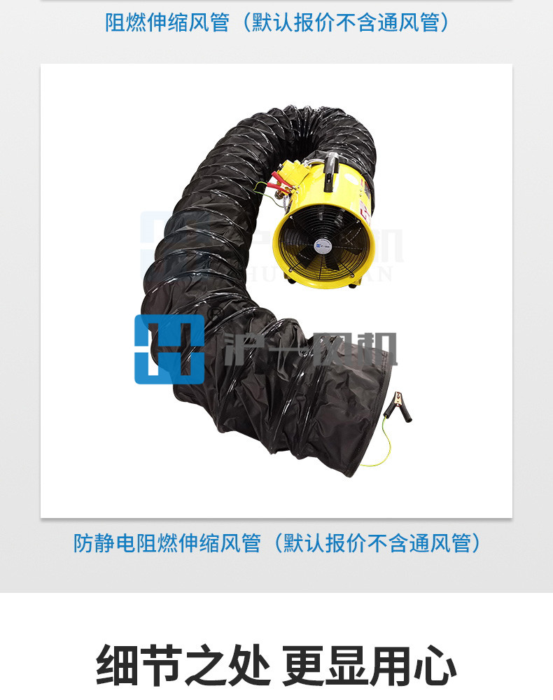 4.可以选配PVC阻燃通风管、防爆风管;